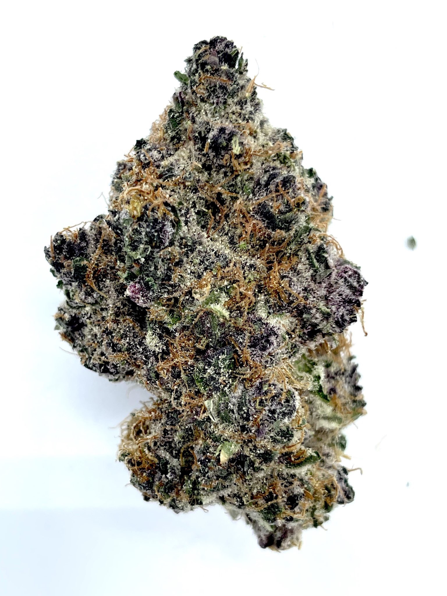 Super Boof by Quad Zaza looks exactly like a top-tier strain should. The buds are dense, chunky, and heavily coated in milky trichomes that shimmer under light. Deep green tones mix with hints of purple, accented by bright orange pistils that add contrast and visual appeal.